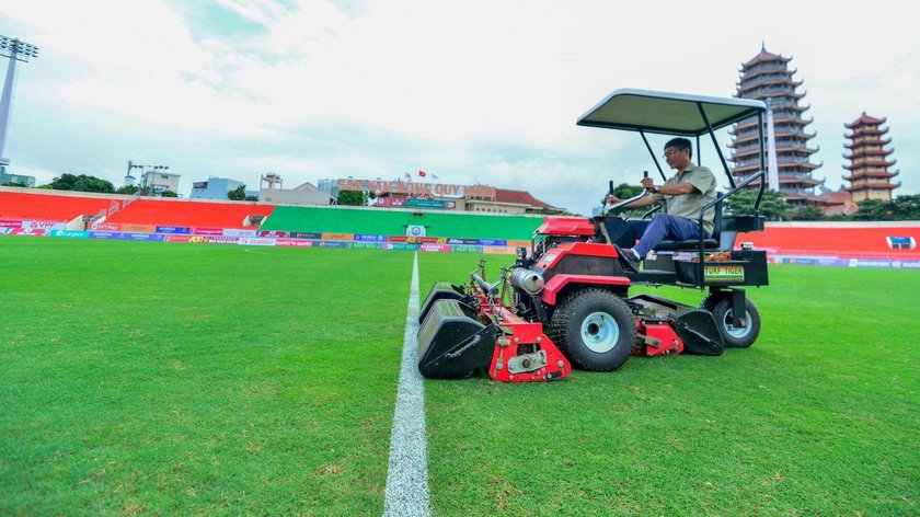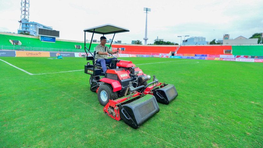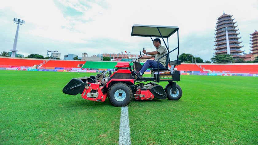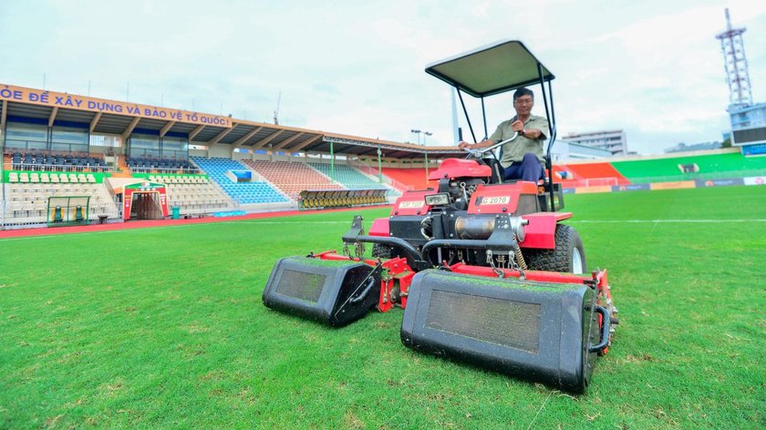 Hình ảnh xe cắt cỏ sân bóng đá thực tế