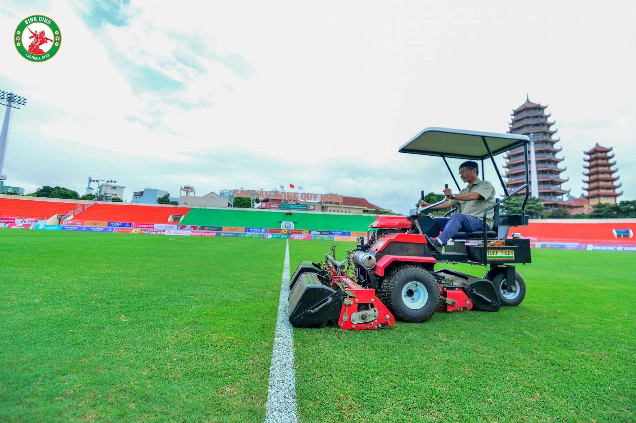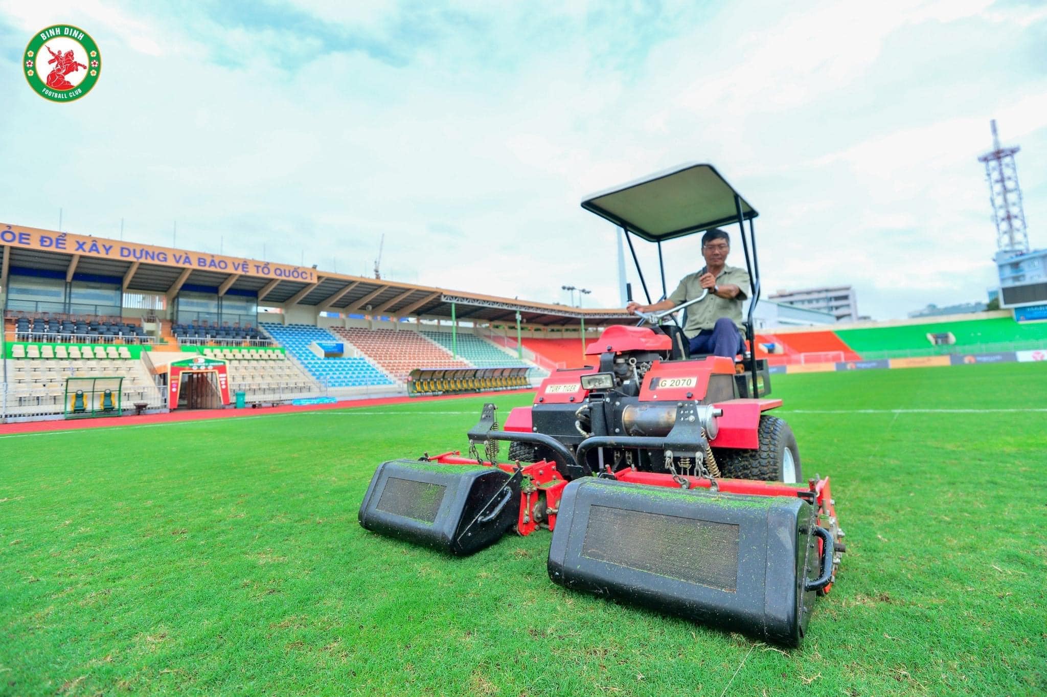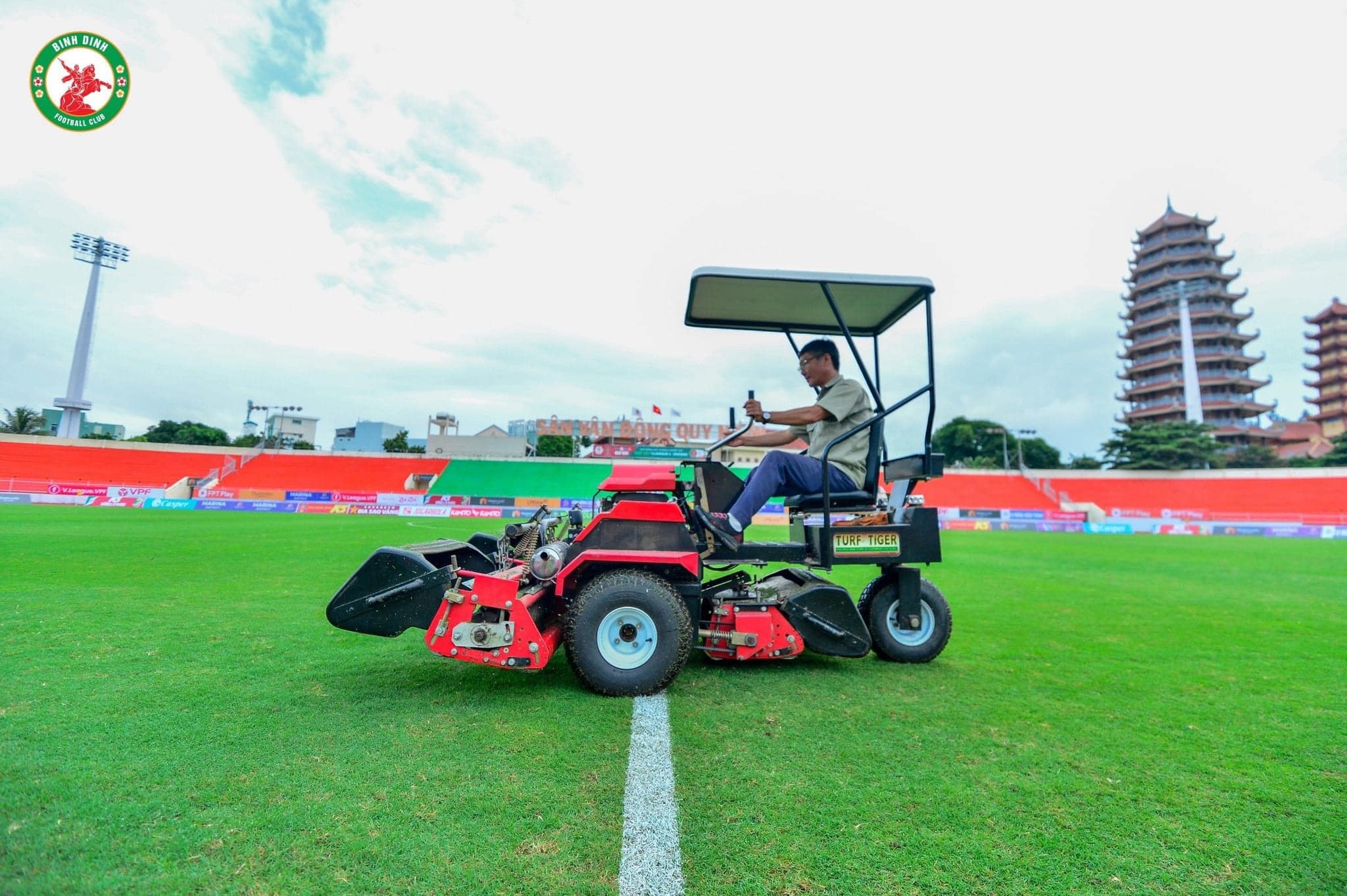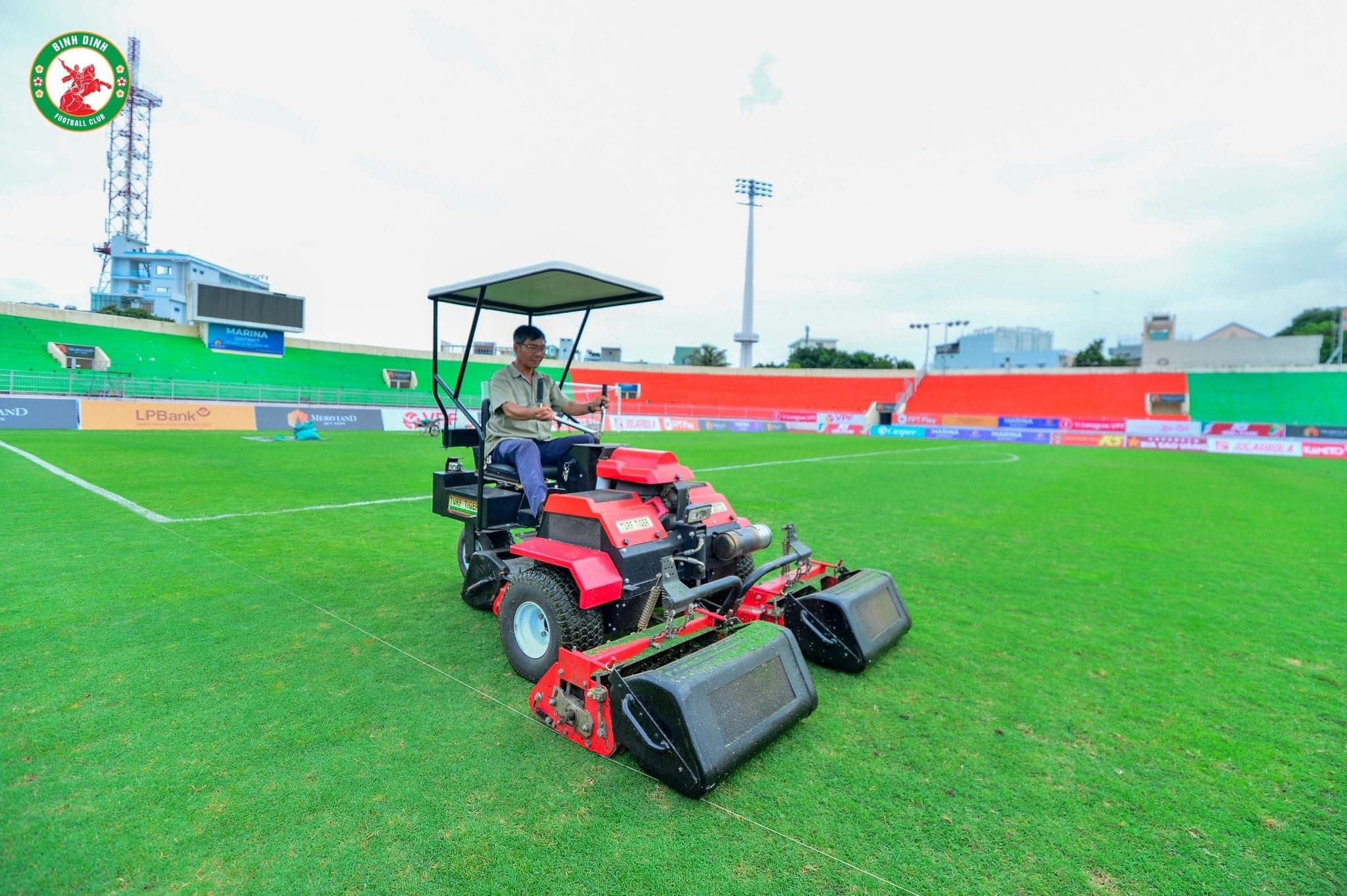 Hình ảnh xe cắt cỏ sân bóng đá thực tế